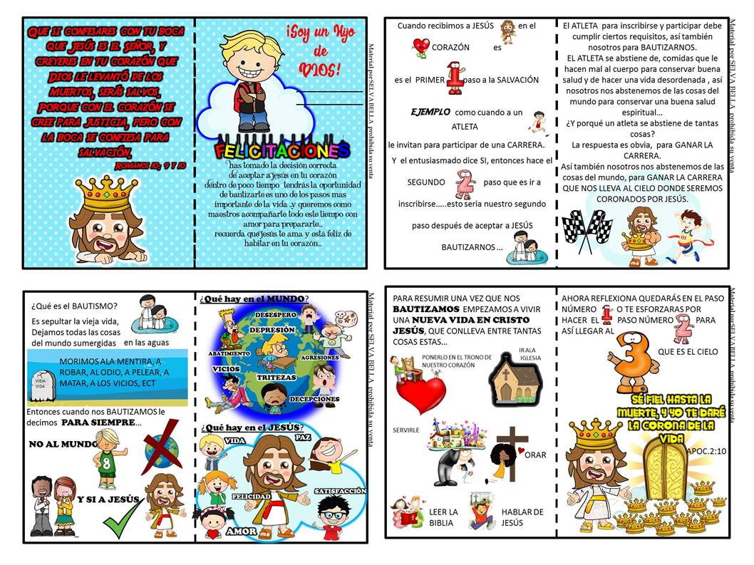 ESTA PENSADA PARA EL NIÑO DE 10 AÑOS EN ADELANTE QUE PRONTO TENDRA QUE TOMAR LA DECISIÓN DE BAUTIZARSE ... AQUI LE EXPLICAREMOS EN SENCILLAS PALABRAS QUE ES ENTREGARSE A CRISTO QUE ES EL BAUTISMO Y EL PORQUE BAUTIZARSE.....Y LA META FINAL QUE ES LLEGAR AL CIELO... ESPERO  LES SEA DE BENDICIÓN HAY 3 TA,AÑOS DIFERENTES PARA IMPRIMIR SEGUN SUS POSIBILIDADES LIBRETA EN TAMAÑO HOJA A4 ... LIBRETA ENTERA EN 1 HOJA A4 Y 4 LIBRETAS EN 1 HOJA A4... ESTARAN EN BLANCO Y NEGRO Y UNA PORTADA DICE MAESTRAS Y OTRA MAESTROS.....